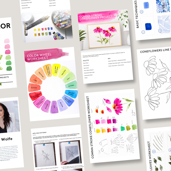 Experience the joy of learning how to paint with our relaxed step-by-step watercolor class with 9 pre-recorded video projects + 12 mini vignettes and a PDF course guide.