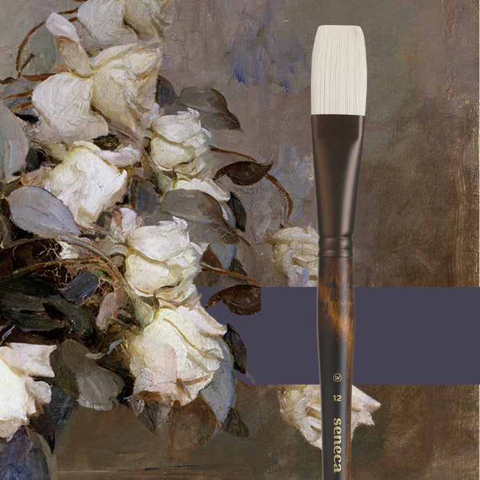 Seneca is crafted for artists who value strength, balance, and performance in acrylic and oil painting. The multi-diameter synthetic bristle blend delivers the resilience and control of the finest natural hog bristle, holding its shape beautifully. Designed for versatility, from bold, textured strokes to crisp edges, the filaments are heat set to retain their shape for years to come.