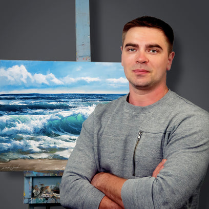Dimitri Sirenko is a Ukrainian-born Canadian artist whose creative journey began with a childhood passion for video games and animation. After immigrating to Canada, he studied Media Arts at Emily Carr University and spent over a decade in the video game and animation industries, eventually achieving a role of Art Director. Despite professional success, Dimitri sought deeper artistic fulfillment, rediscovering his love for traditional media through painting at home and participating in live art competitions. His transition to fine art marked a return to personal expression, blending his digital roots with bold and expressive realism in his work.