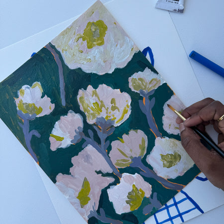 Oris's work is rooted in her heritage and guided by a love for beauty in everyday life. Through her artwork and textile goods, she creates pieces that carry meaning and warmth, inviting others to pause, reflect, and connect. A devoted fan of Callia Artist Brushes, Oris loves how they allow her to create expressive, bold brushstrokes with effortless control, making them an essential part of her creative process.