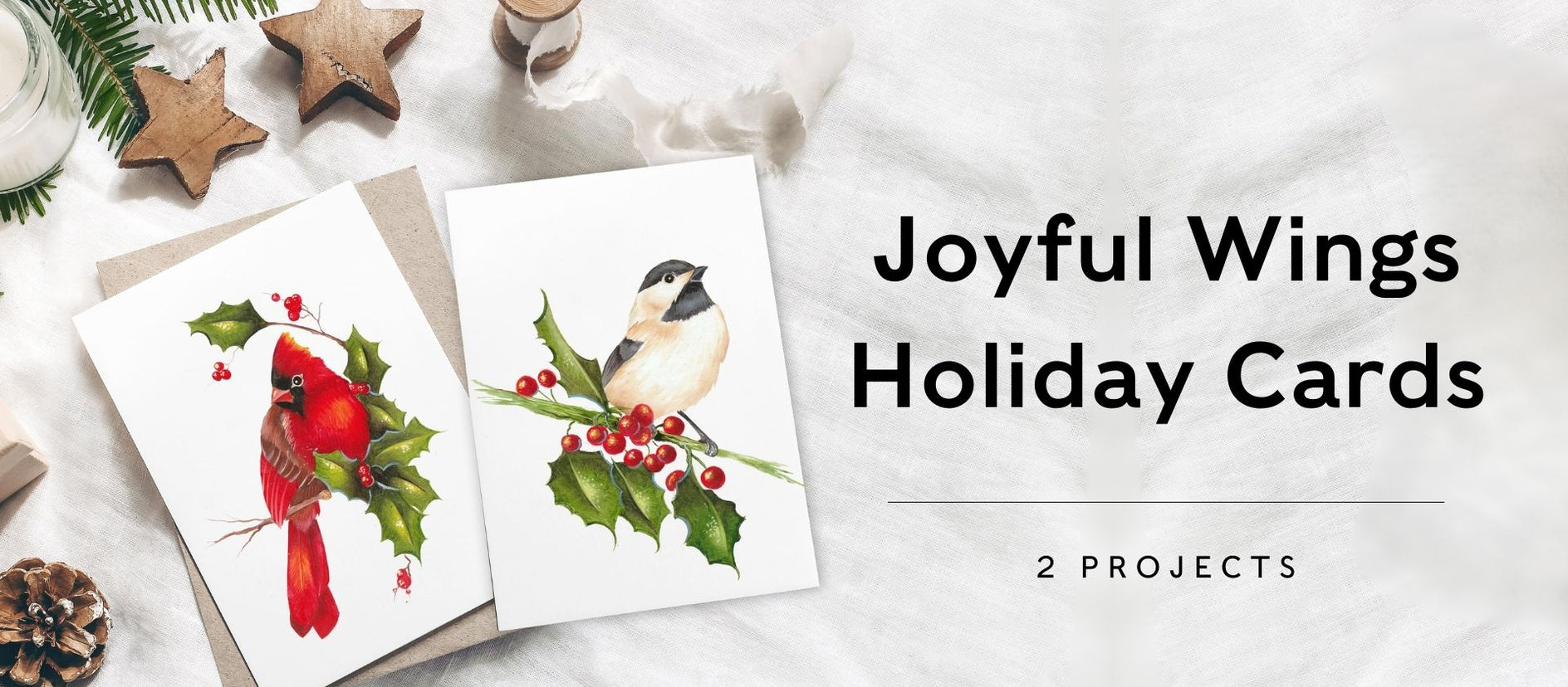 - 2 Beautiful Birds: Paint two holiday birds surrounded by holly!