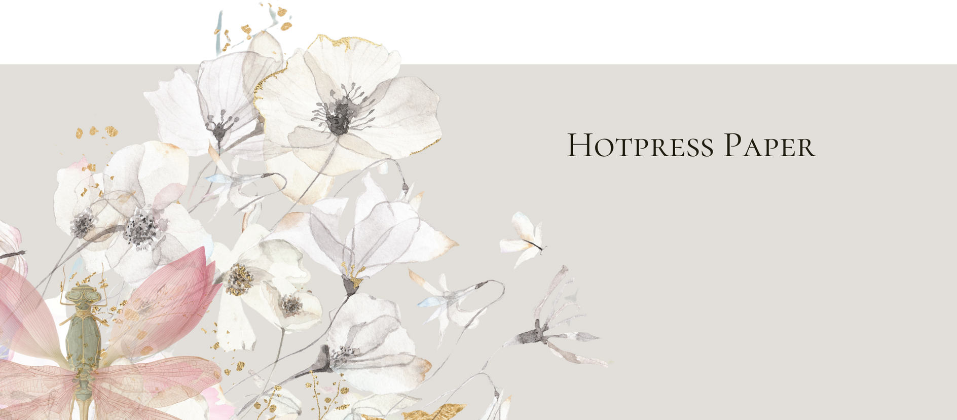 Hotpress paper is one of our favouite surfaces. It is smooth to the touch yet still allows one to blend wet-on-wet and wet-on-dry with watercolor. In addition we often use ink, liquid acrylic, marker and pen in multiple layers and the surface stands up beautifully!