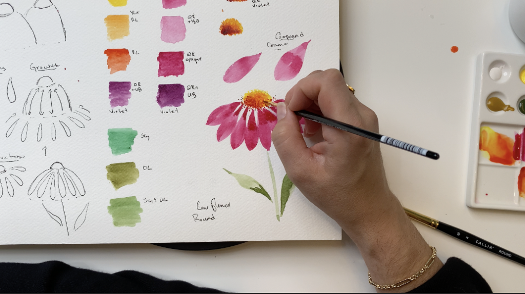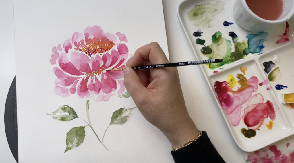 Paint stunning watercolor florals in minutes. Step-by-step you’ll learn to mix color, paint flowers and leaves and create entire masterpieces! Discover the joy of watercolor painting from the comfort of your own home and start painting something beautiful today!